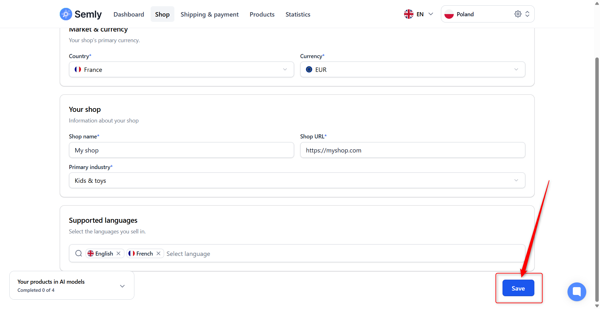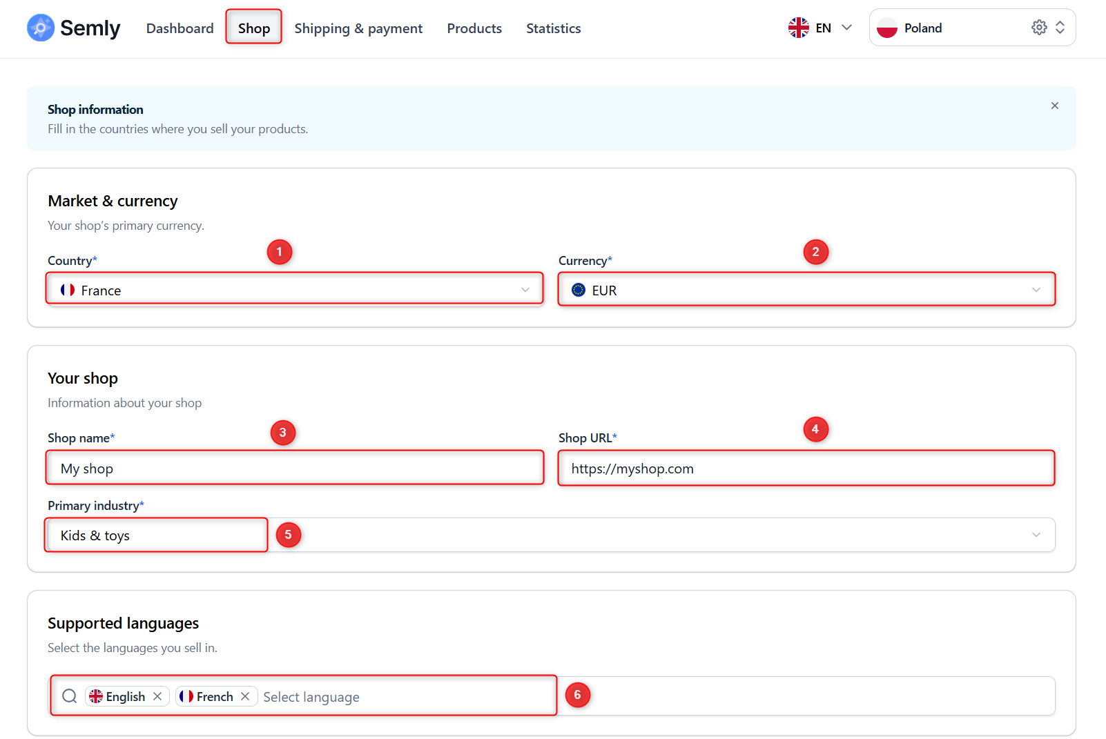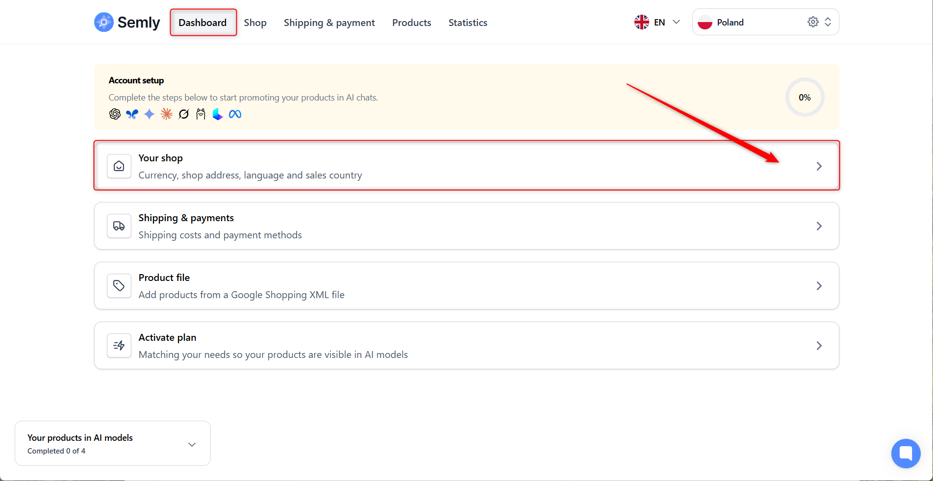 After logging in to your Semly account, you will need to complete three configuration steps that will enable us to start optimization activities for your shop.