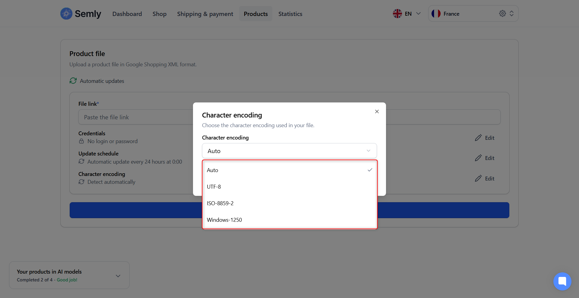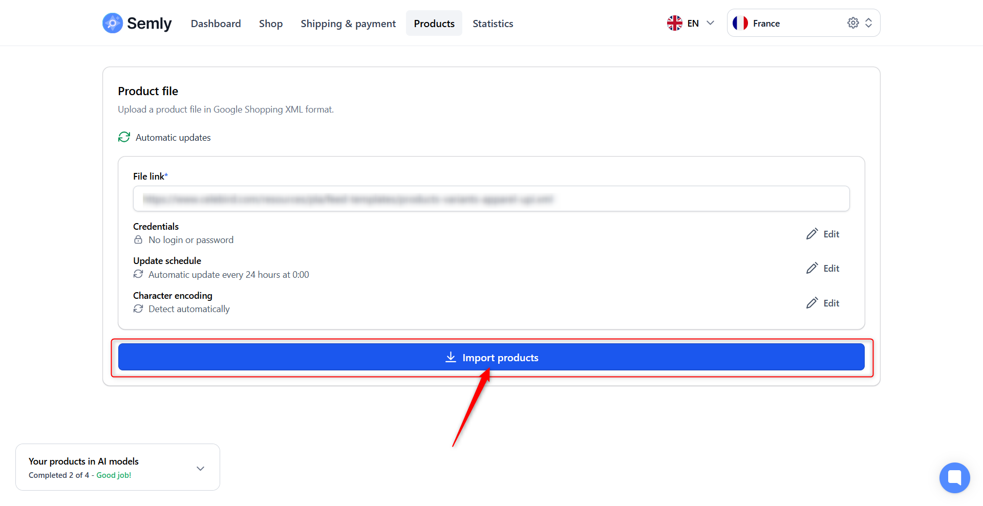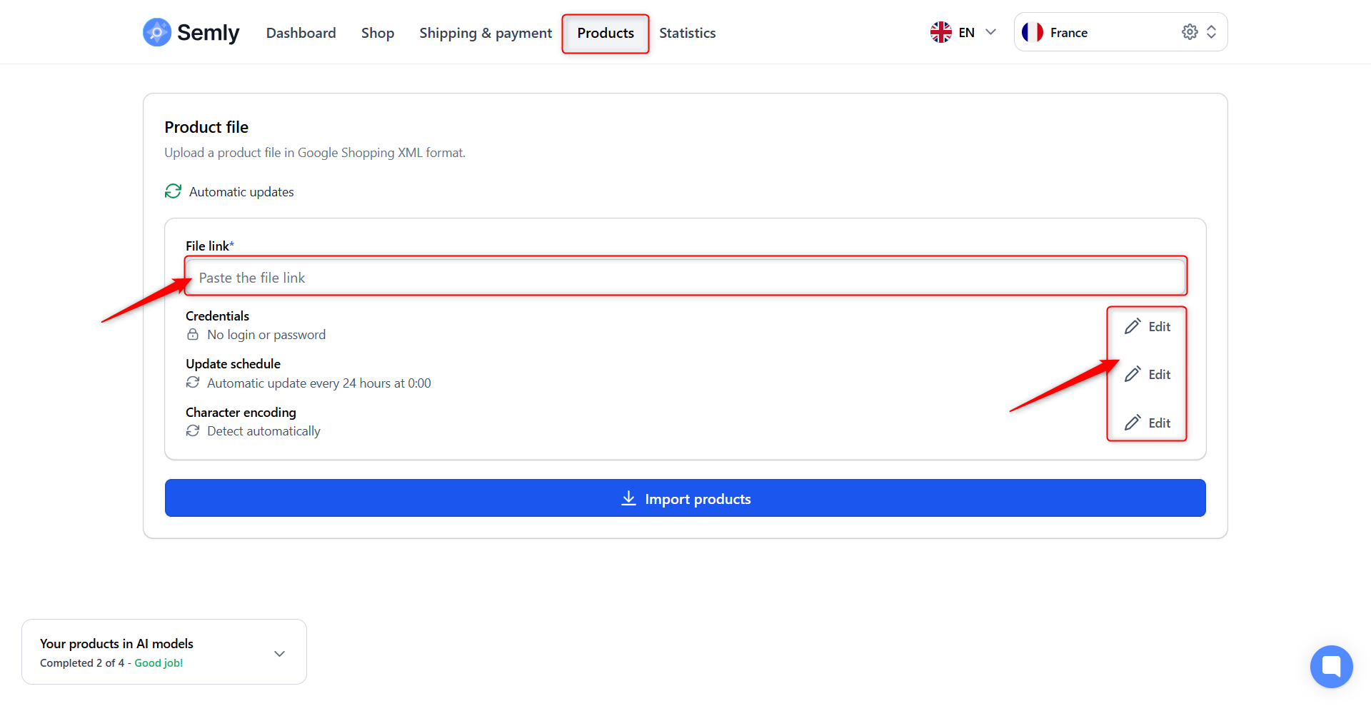 Once you have obtained the link to your product feed, paste it into the appropriate field.