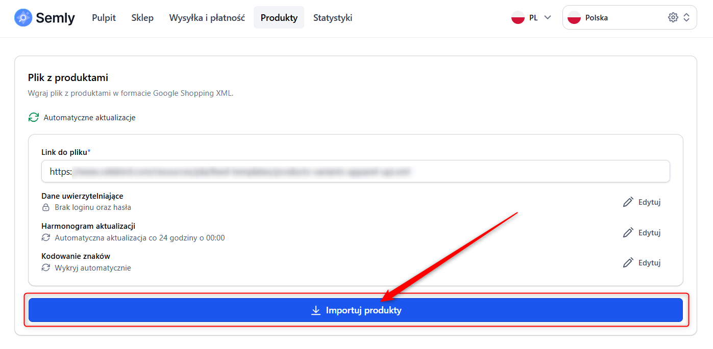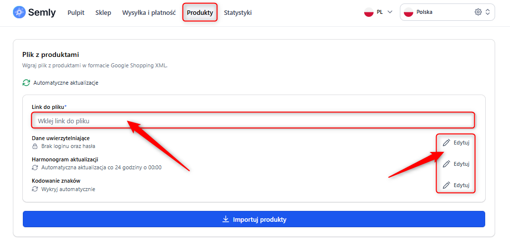 Po wpisaniu wszystkich wymaganych informacji kliknij przycisk "Importuj produkty".